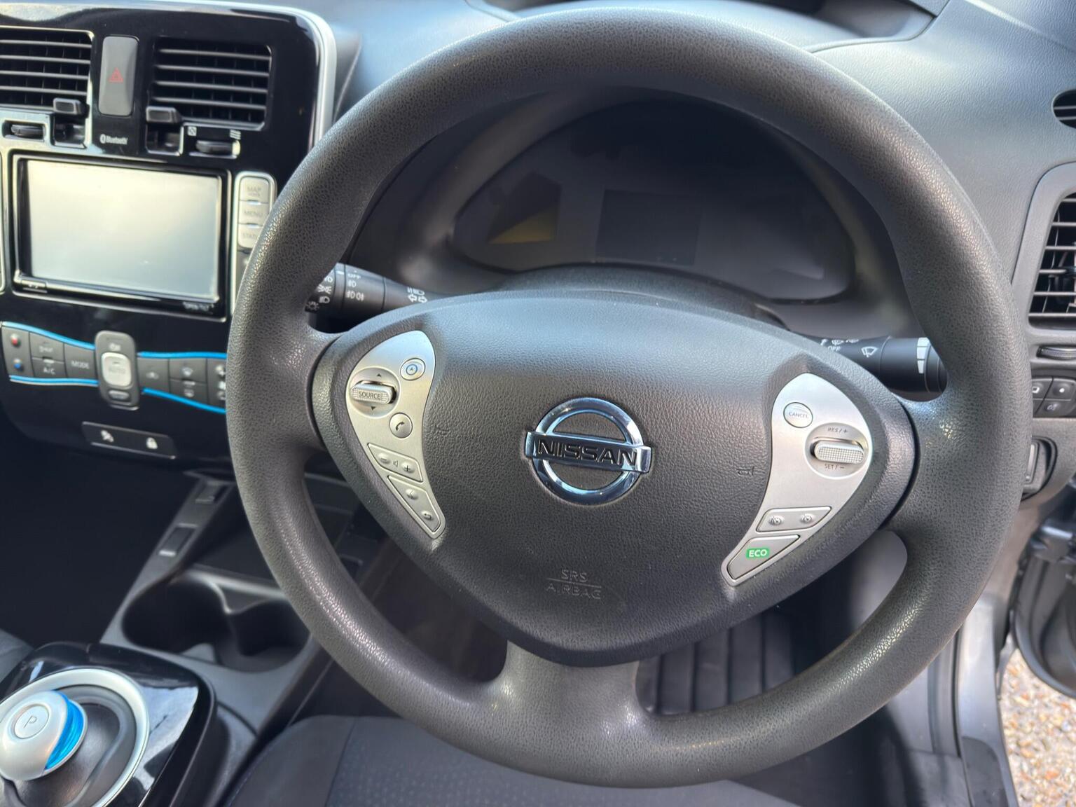 2015/15 plate, Nissan Leaf 24kWh Acenta Auto 5dr, 97k full service history, 3 owners, new mot upon sale, finished metallic grey, electric windows, electric heated mirrors, remote control central locking, alarm and engine immobiliser, power steering, quick clear rear screen, Bluetooth, Bluetooth audio, climate control, air con, sat nav, reverse camera, multi function steering wheel, anti skid control, esp, anti lock brakes, CD player, rear head rests, reverse camera, front airbags, front arm rest, seat and side airbags, steering audio controls, isofix seats, alloys, height adjustable steering and front seat, PX welcome, low rate finance available, all card payments accepted, all cars hpi checked, extendable 6, 12 or 24 months warranty available.